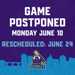 The Berries and the 57's will now face off on Monday, June 24 at 7:00 PM. Tickets for tonight's game will be honoured for the new date.